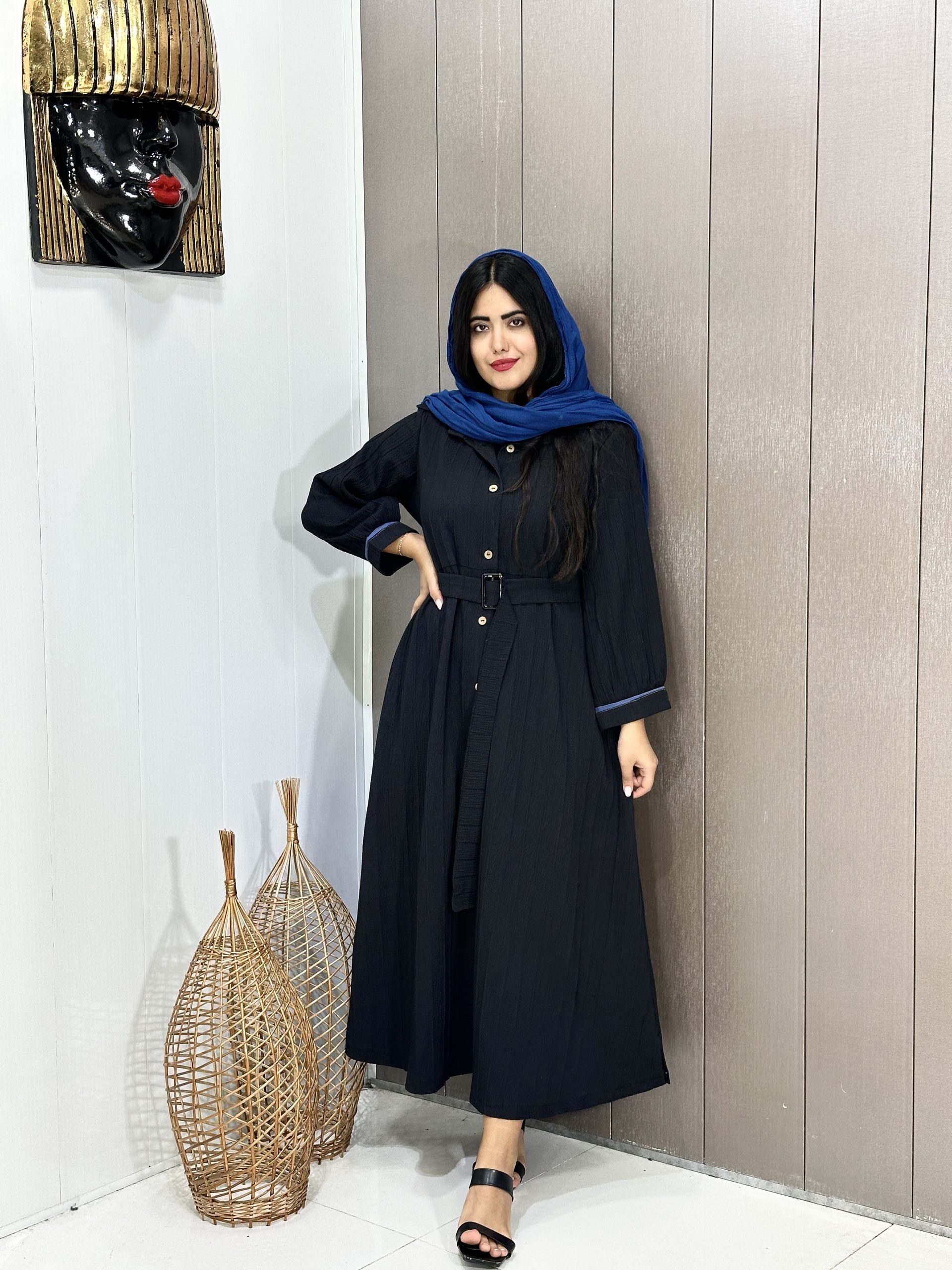 بارونی کتان فلور 408 - مشکی, سایز-دو-46-تا-54